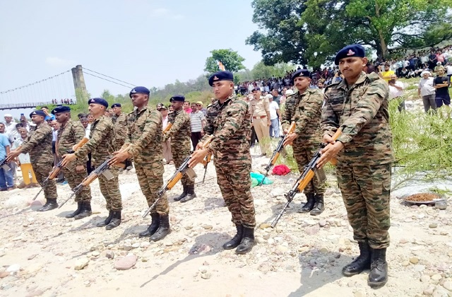इस अवसर पर सैकड़ों ग्रामीण, जनप्रतिनिधि, प्रशासनिक अधिकारी और सेना के जवान मौजूद रहे। सेना की 13 जैक राइफल्स यूनिट से सूबेदार धर्मचंद, सूबेदार माहित कुमार और नायब सूबेदार सुनील गुलेरिया सहित अन्य जवानों ने सैन्य परंपरा के अनुसार सलामी दी। स्थानीय प्रशासन की ओर से तहसीलदार थुरल राजेश सडयाल, डीएसपी लोकेंद्र नेगी और एसएचओ गुरदेव सिंह भी मौके पर मौजूद रहे।