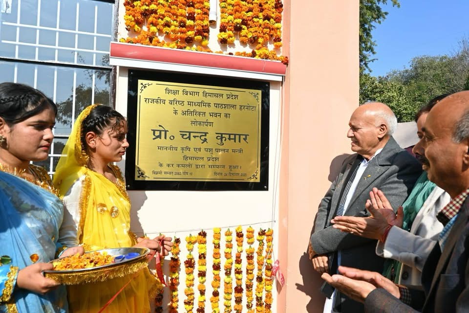 कृषि एवं पशुपालन मंत्री प्रो. चंद्र कुमार ने कहा कि देश का भविष्य स्कूल की चारदीवारी में तैयार होता है और इसी वजह से सरकार की प्राथमिकता शिक्षा के आधारभूत ढांचे को मजबूत करना और बच्चों को बेहतर गुणवत्ता वाली शिक्षा देना है। वे मंगलवार को ज्वाली विधानसभा क्षेत्र के राजकीय वरिष्ठ माध्यमिक विद्यालय हरनोटा में आयोजित वार्षिक पारितोषिक वितरण समारोह को मुख्य अतिथि के रूप में संबोधित कर रहे थे। इस मौके पर उन्होंने लगभग 30 लाख रुपये की लागत से बने स्कूल के अतिरिक्त भवन का लोकार्पण भी किया।