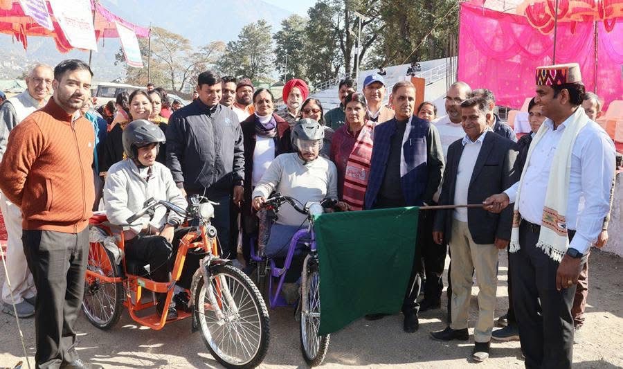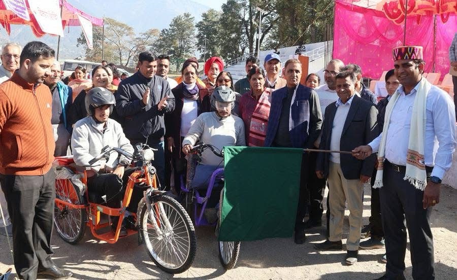 धर्मशाला, 08 दिसंबर: दिव्यांगजनों को समाज की मुख्यधारा से जोड़ने और उन्हें आत्मनिर्भर बनाने के लिए जिला प्रशासन लगातार प्रयास कर रहा है। इसी दिशा में आज पुलिस मैदान, धर्मशाला में पावर फाइनेंस कॉर्पोरेशन लिमिटेड (पी.एफ.सी.) के सीएसआर कार्यक्रम के तहत निःशुल्क बैटरी चालित ट्राईसाइकिल वितरण समारोह आयोजित किया गया। इस अवसर पर उपायुक्त कांगड़ा हेमराज बैरवा ने 45 दिव्यांग लाभार्थियों को ट्राईसाइकिलें वितरित कीं।