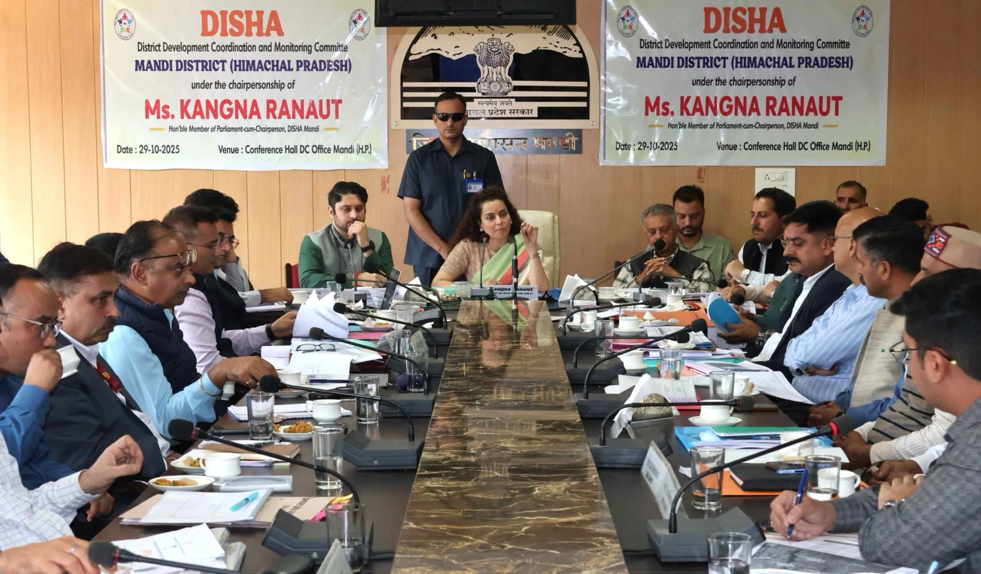 मंडी | हिमाचल Mandi: सांसद कंगना रणौत ने विकास कार्यों पर दिखाई सख्ती: कहा—“बजट है, तो ढिलाई क्यों?” दिशा समिति की बैठक में कंगना ने अधिकारियों को दिए कड़े निर्देश, विकास योजनाओं की प्रगति पर ली विस्तृत रिपोर्ट October 29, 2025