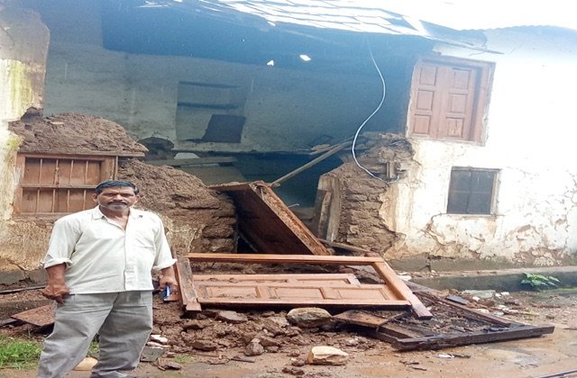 Mandi: मूसलाधार बारिश में ढहा दो मंजिला मकान, परिवार बेघर – प्रशासन से मुआवज़े की गुहार