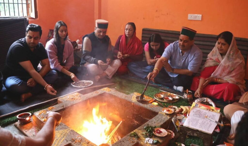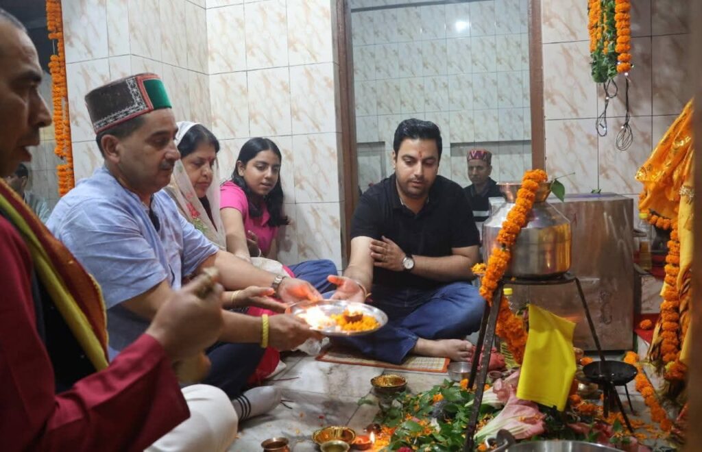 पूजा के बाद पठानिया अपनी धर्मपत्नी सुनंदा पठानिया और बेटी हर्षिता के साथ मंदिर में शीश नवाने पहुंचे और आशीर्वाद लिया।