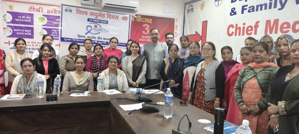 धर्मशाला, 14 नवंबर 2025। स्वास्थ्य एवं परिवार कल्याण विभाग, जिला कांगड़ा द्वारा विश्व मधुमेह दिवस के अवसर पर कार्यालय मुख्य चिकित्सा अधिकारी कांगड़ा, धर्मशाला के सभागार में जिला स्तरीय जागरूकता कार्यक्रम आयोजित किया गया। हर वर्ष 14 नवंबर को विश्व मधुमेह दिवस मनाया जाता है, जिसका उद्देश्य मधुमेह के प्रति लोगों में जागरूकता बढ़ाना है।