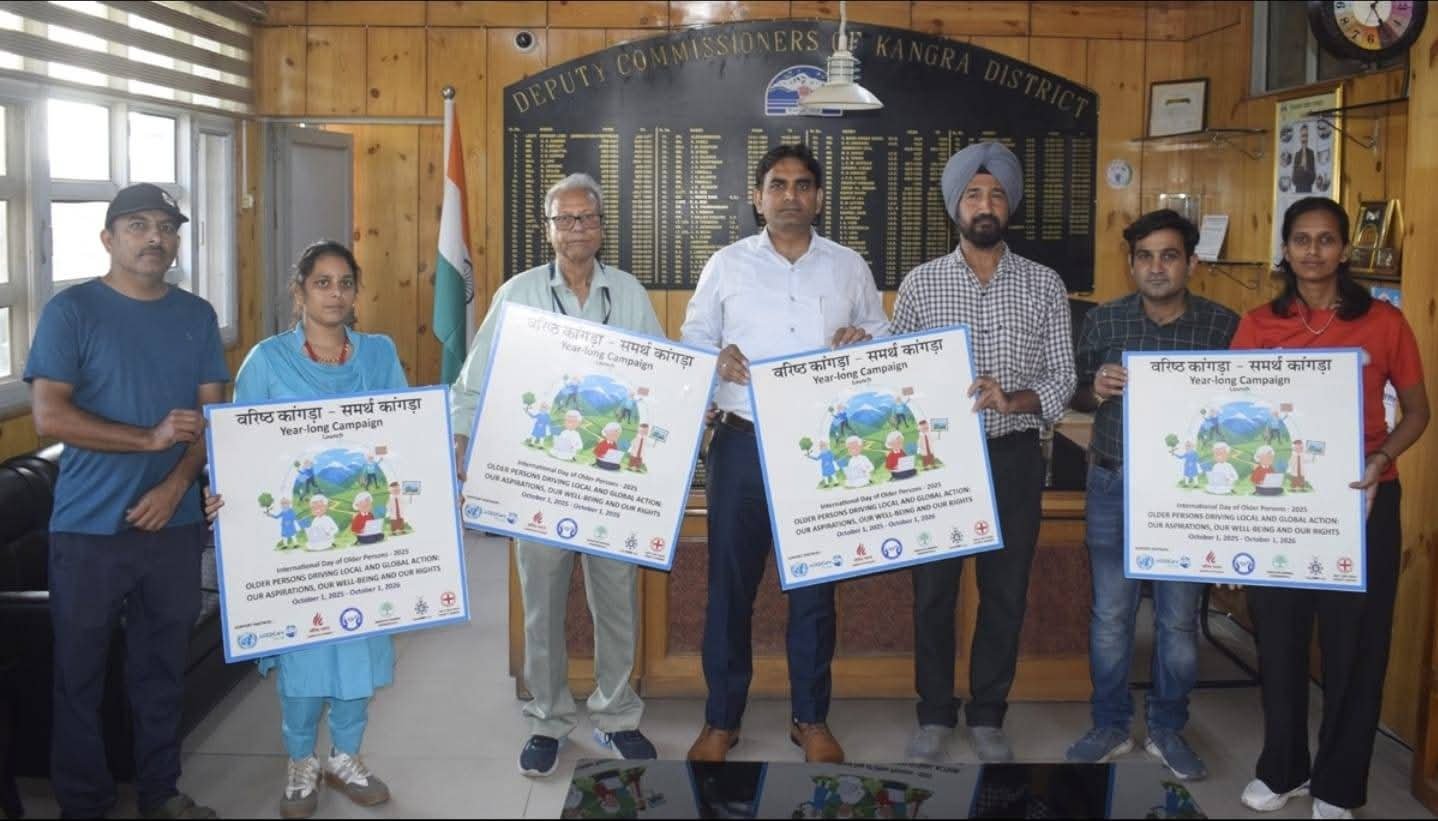 धर्मशाला, 1 अक्टूबर 2025: अंतर्राष्ट्रीय वरिष्ठ नागरिक दिवस के अवसर पर कांगड़ा जिले में वरिष्ठ नागरिकों की सुरक्षा और उनके सशक्तिकरण को ध्यान में रखते हुए उपायुक्त हेम राज बैरवा ने ‘‘वरिष्ठ कांगड़ा – समर्थ कांगड़ा’’ नामक वर्षव्यापी अभियान का शुभारंभ किया। इस अभियान का मुख्य उद्देश्य जिले के प्रत्येक पंचायत और समुदाय स्तर पर वरिष्ठ मंडलों का गठन करना और वरिष्ठ नागरिकों की आपदा जोखिम न्यूनीकरण में सक्रिय भागीदारी सुनिश्चित करना है।