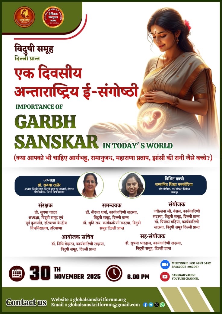 क्या सच में आर्यभट, स्वामी विवेकानंद, आदि शंकराचार्य या रानी लक्ष्मीबाई जैसी तेजस्वी और प्रतिभाशाली संतान पाई जा सकती है? इसी रहस्य को वैज्ञानिक व सांस्कृतिक दृष्टिकोण से समझने के लिए विदुषी समूह, दिल्ली प्रान्त कल एक राष्ट्रीय एक-दिवसीय ई-संगोष्ठी आयोजित कर रहा है।