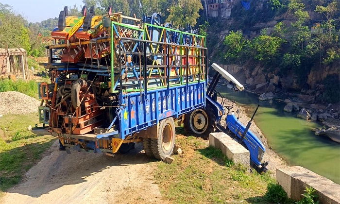 हादसे के समय ट्रैक्टर में दो लोग सवार थे। घटना के तुरंत बाद स्थानीय लोग मौके पर पहुंचे और स्थिति को संभालने में जुट गए। उनकी मदद से दोनों लोगों को सुरक्षित बाहर निकाल लिया गया। इस हादसे में किसी प्रकार का कोई जान-माल का नुकसान नहीं हुआ है।