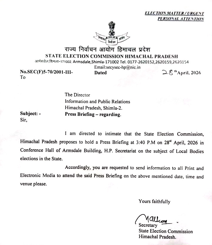 हिमाचल प्रदेश में पंचायत चुनाव को लेकर बड़ी हलचल तेज हो गई है और अब चुनावी प्रक्रिया शुरू होने जा रही है। स्टेट इलेक्शन कमीशन ने आज दोपहर 3:40 बजे एक अहम प्रेस कॉन्फ्रेंस बुलाई है, जिसमें पंचायत चुनाव की आधिकारिक तारीखों का ऐलान किया जाएगा। इस घोषणा के साथ ही पूरे प्रदेश के ग्रामीण इलाकों में आदर्श आचार संहिता तुरंत लागू हो जाएगी, जिससे राजनीतिक माहौल और ज्यादा गरमाने की उम्मीद है।