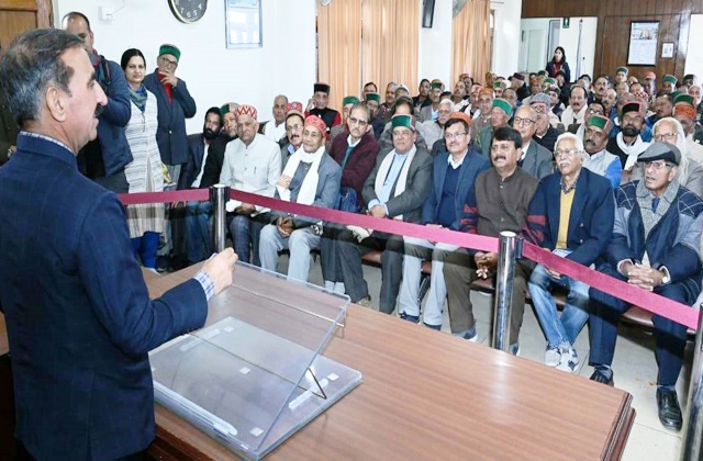 हिमाचल प्रदेश पेंशनर्ज संयुक्त फ्रंट के अध्यक्ष आत्मा राम शर्मा ने मुख्यमंत्री का आभार जताया और अपनी विभिन्न मांगों से उन्हें अवगत करवाया। इस मौके पर पेंशनर्ज संयुक्त फ्रंट के पदाधिकारियों ने मुख्यमंत्री के समर्थन में नारे भी लगाए।
