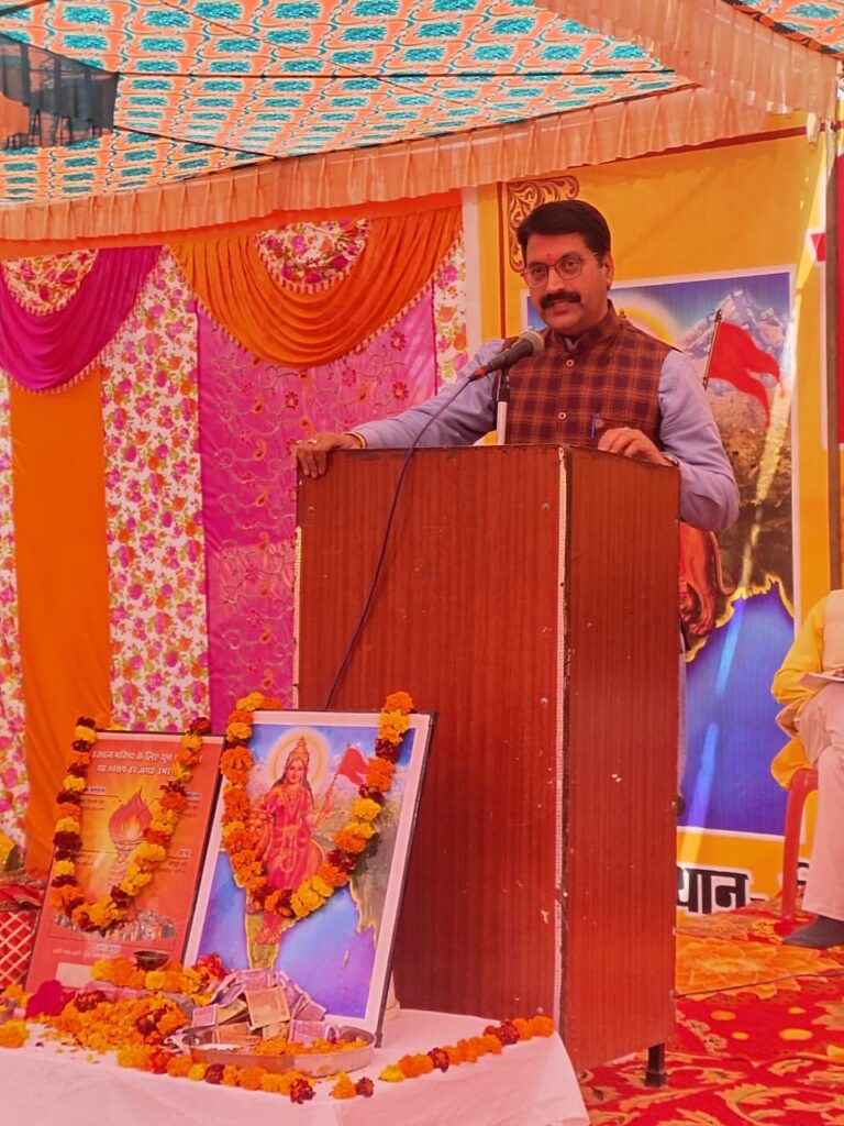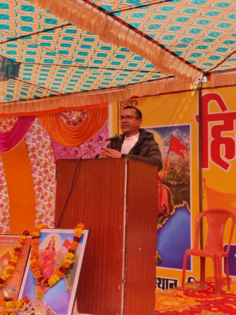 मुख्य वक्ता प्रोफेसर प्रदीप कुमार ने राष्ट्रीय स्वयंसेवक संघ के शताब्दी वर्ष के संदर्भ में समाज परिवर्तन से जुड़े “पंच परिवर्तन” विषयों पर विस्तार से चर्चा की। उन्होंने समरसता, पर्यावरण संरक्षण, नागरिक कर्तव्यों के पालन, कुटुंब प्रबोधन और ‘स्व’ के भाव को समझकर उसे व्यवहार में उतारने का आह्वान किया। उनके विचारों ने उपस्थित जनसमूह को आत्मचिंतन और सामाजिक जिम्मेदारी की दिशा में प्रेरित किया।