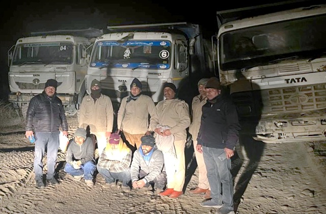जानकारी के मुताबिक संसारपुर टैरस थाना प्रभारी संजय शर्मा और माइनिंग अधिकारी अश्वनी कौंडल के नेतृत्व में टीम ने स्वां खड्ड में दबिश दी। उस समय खड्ड में अवैध खनन जोरों पर चल रहा था। पुलिस को देखते ही टिप्पर चालक वाहनों को लेकर पंजाब की ओर भागने लगे, लेकिन मुस्तैदी दिखाते हुए टीम ने घेराबंदी कर चारों टिप्परों को पकड़ लिया और उनके चालान काटे।