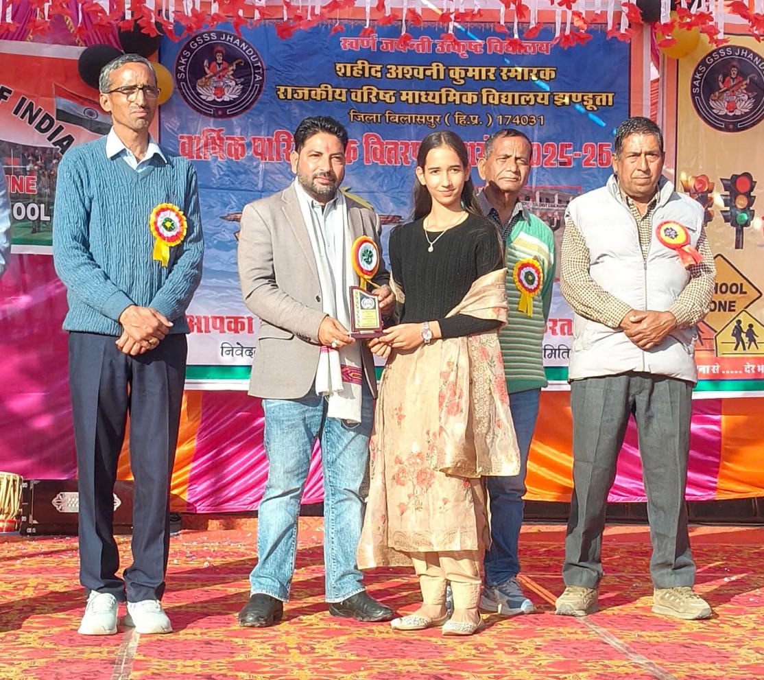 झंडूता — शाहिद अश्विनी कुमार स्मारक राजकीय वरिष्ठ माध्यमिक पाठशाला झंडूता में वार्षिक पारितोषिक वितरण समारोह बड़े उत्साह और गरिमामय वातावरण में आयोजित किया गया। पूरे विद्यालय परिसर को रंग-बिरंगी झंडियों, गुब्बारों और फूलों से सजाया गया, जिससे माहौल पूरी तरह उत्सवमय हो गया।