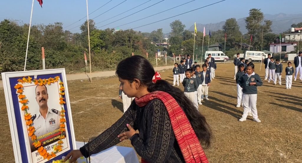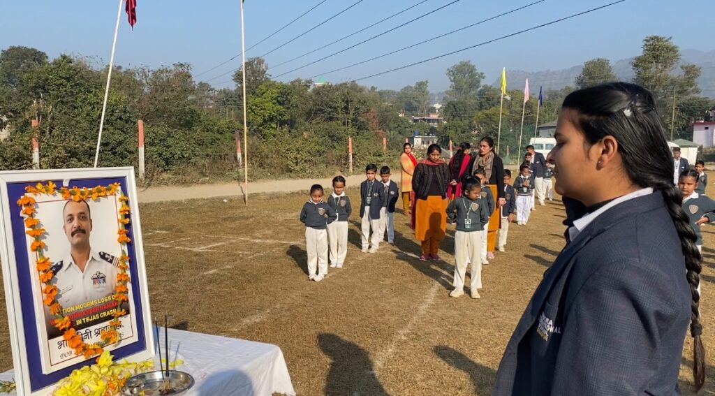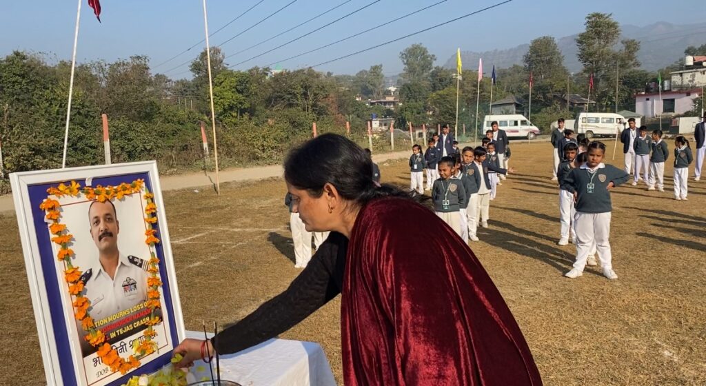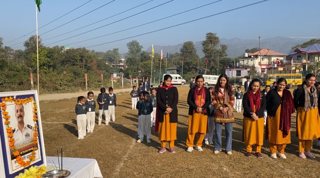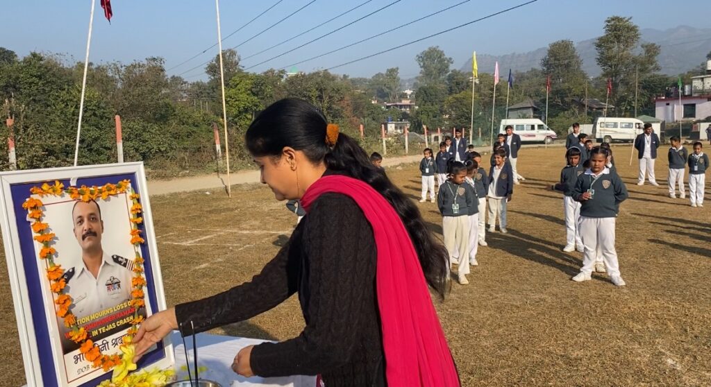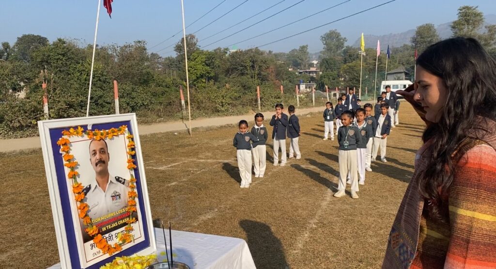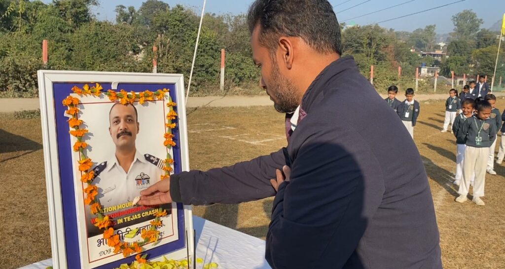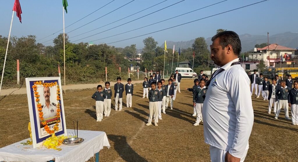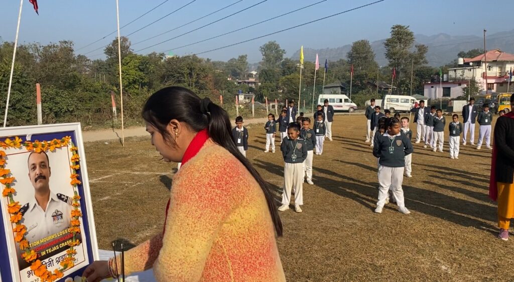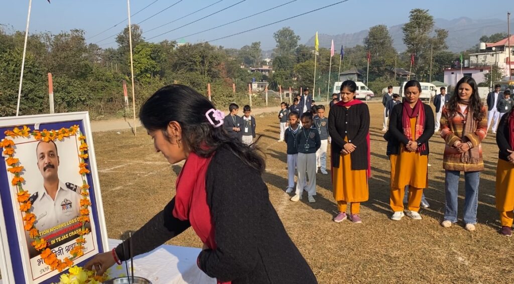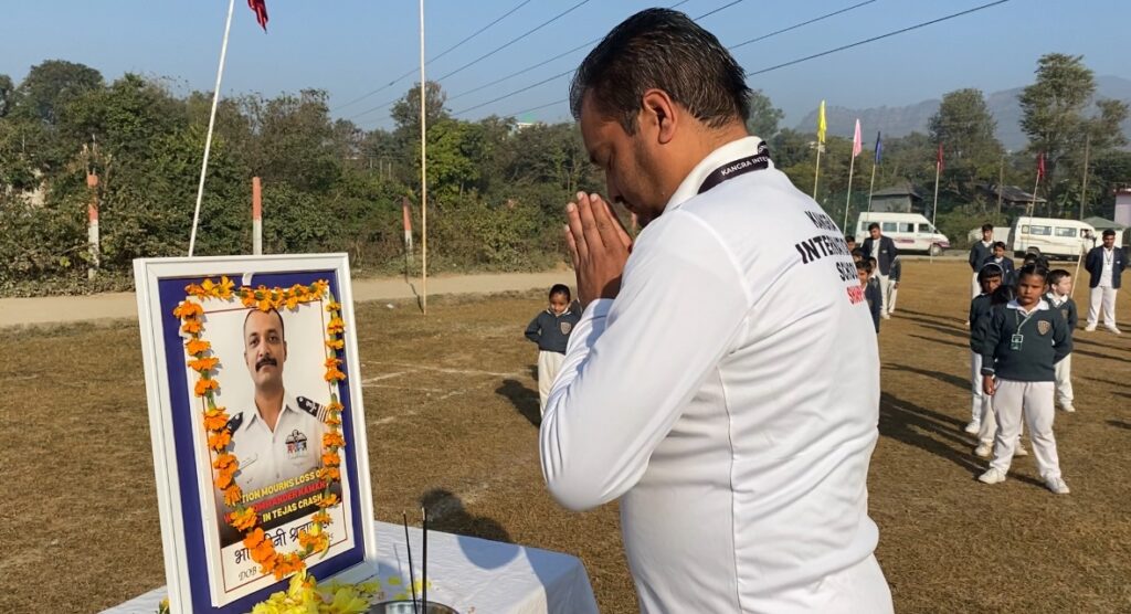शाहपुर। कांगड़ा इंटरनेशनल स्कूल, शाहपुर ने 24 नवंबर 2025 को विंग कमांडर नमंश स्याल को भावपूर्ण श्रद्धांजलि अर्पित की। प्रिंसिपल अश्वनी के. धीमान के निर्देशन में स्कूल स्टाफ और छात्रों ने इस कार्यक्रम में शहीद अधिकारी की बहादुरी और राष्ट्र सेवा को याद करते हुए गहरा सम्मान जताया।