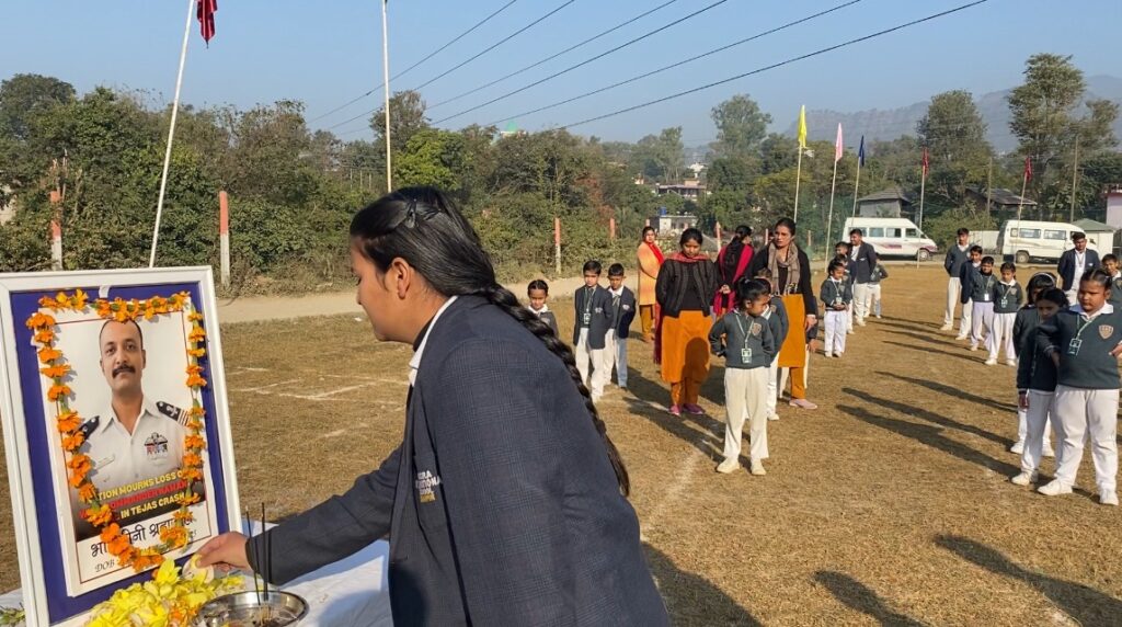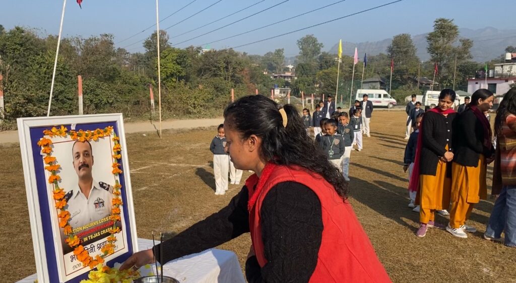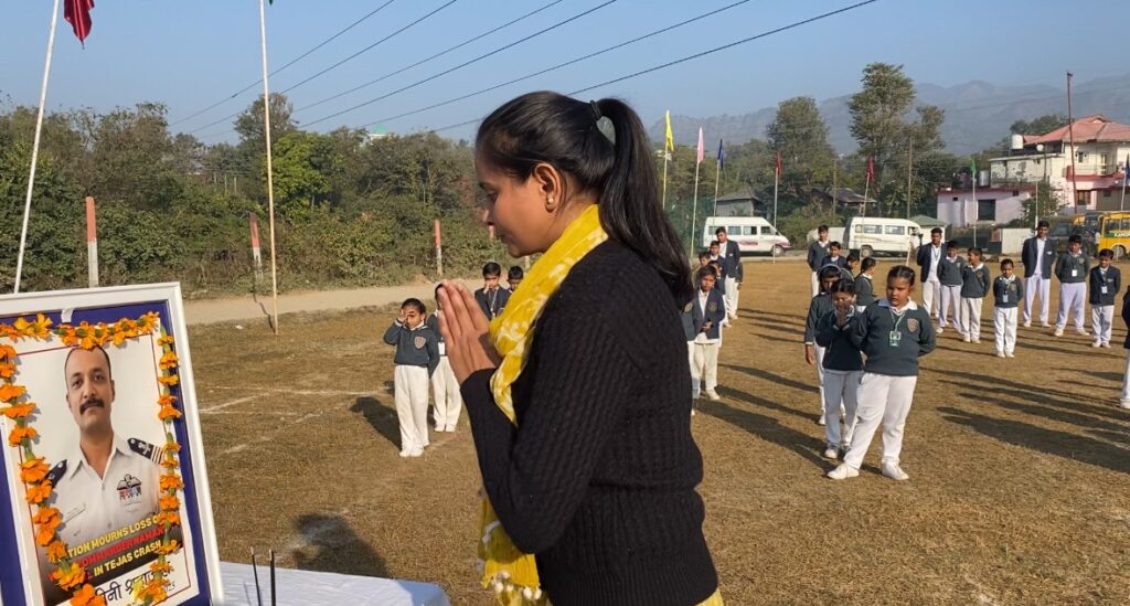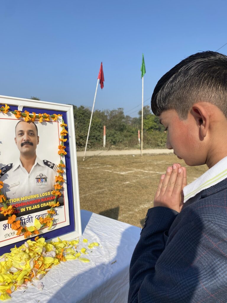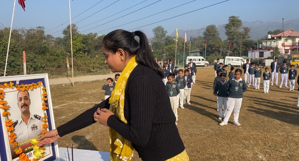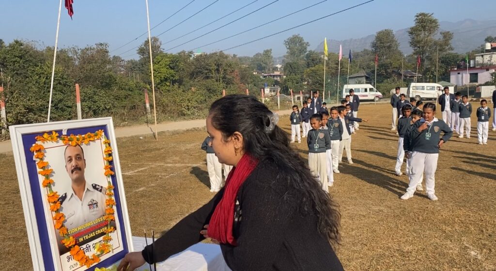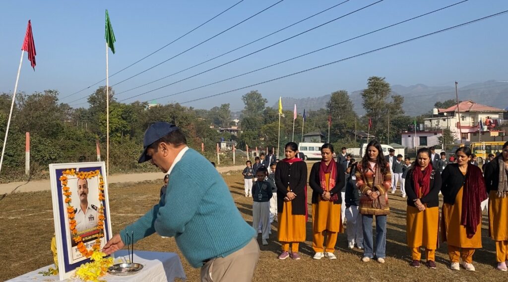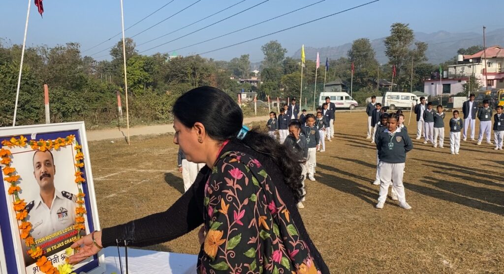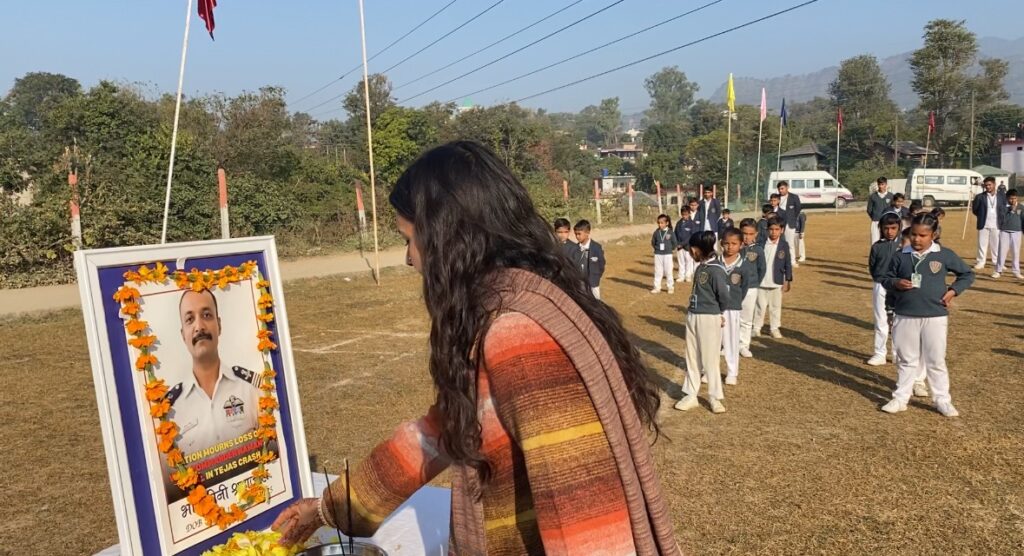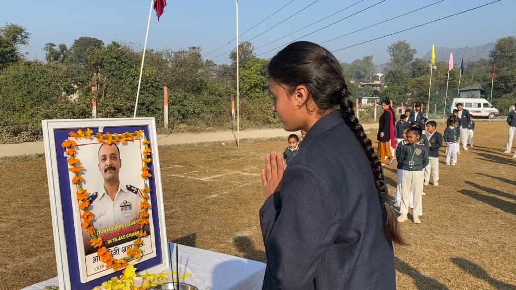 शाहपुर। कांगड़ा इंटरनेशनल स्कूल, शाहपुर ने 24 नवंबर 2025 को विंग कमांडर नमंश स्याल को भावपूर्ण श्रद्धांजलि अर्पित की। प्रिंसिपल अश्वनी के. धीमान के निर्देशन में स्कूल स्टाफ और छात्रों ने इस कार्यक्रम में शहीद अधिकारी की बहादुरी और राष्ट्र सेवा को याद करते हुए गहरा सम्मान जताया।