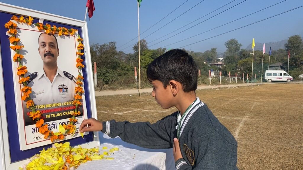 Kangra: शहीद विंग कमांडर नमंश स्याल को कांगड़ा इंटरनेशनल स्कूल ने दी भावभीनी श्रद्धांजलि