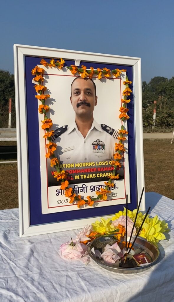 विंग कमांडर नमंश स्याल की शहादत 21 नवंबर 2025, शुक्रवार को दुबई एयर शो के दौरान हुए एक दुखद हादसे में हुई थी। इस दुर्घटना ने पूरे देश को झकझोर दिया और भारतीय वायुसेना के इस वीर अधिकारी की बहादुरी को हमेशा के लिए अमर कर दिया।