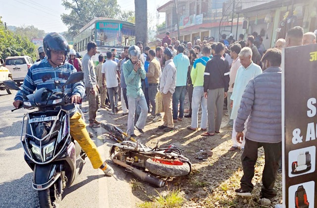 कांगड़ा जिले के पुराने मटौर के पास वीरवार दोपहर एक दिल दहला देने वाला सड़क हादसा हो गया। एक तेज रफ्तार स्पोर्ट्स बाइक पहले बस से टकराई और फिर जोरदार धक्के से लगभग 20 फुट पीछे जा गिरी। टक्कर इतनी भीषण थी कि बाइक दो टुकड़ों में बंट गई और चालक भी दूर जा गिरा।