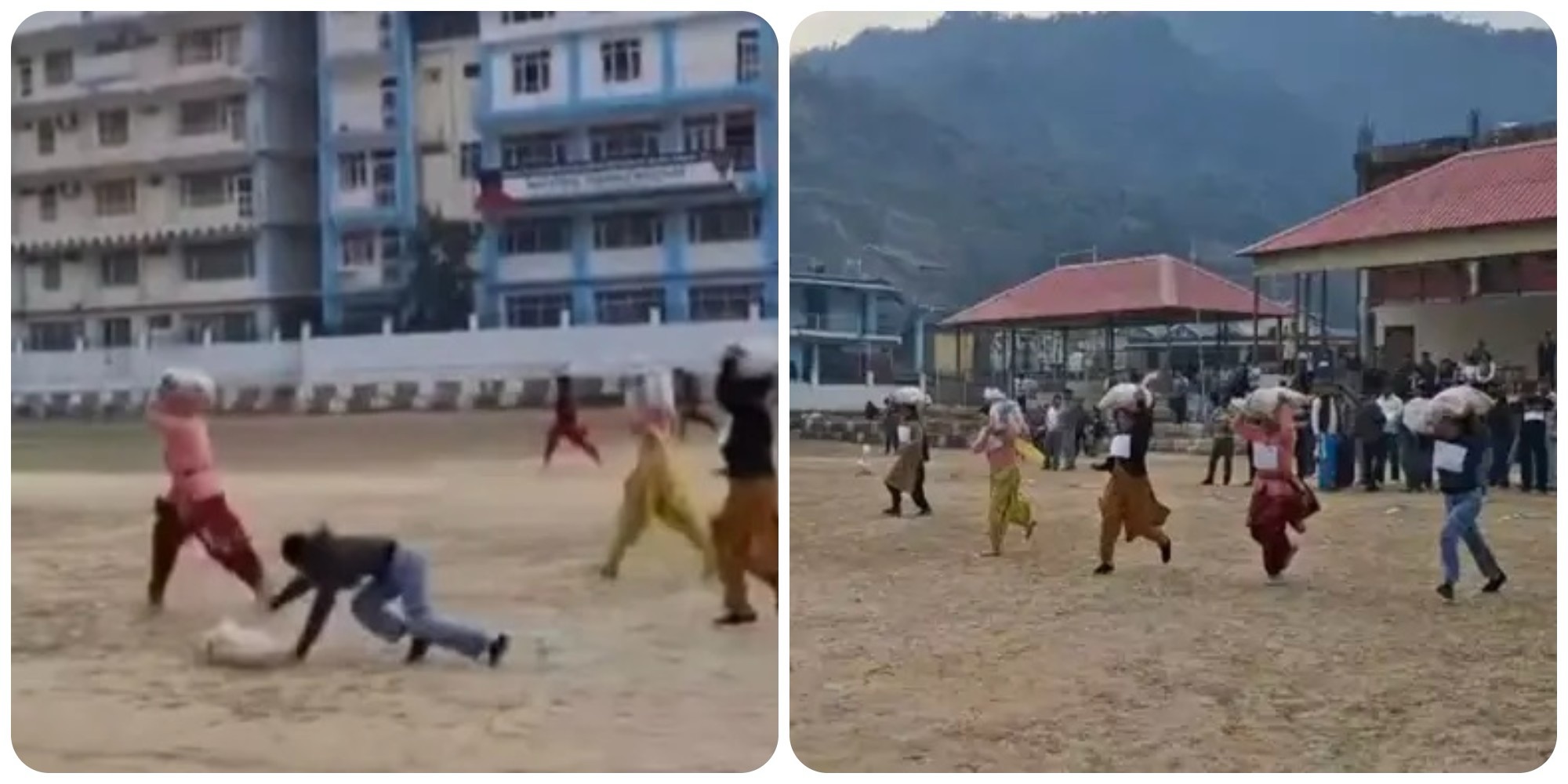 हिमाचल प्रदेश के मंडी जिले से एक वीडियो वायरल हो रहा है जिसने प्रदेश में बेरोजगारी और सरकारी भर्ती प्रक्रियाओं पर नई बहस छेड़ दी है। यह वीडियो पशुपालन विभाग में ‘पशु मित्र’ पदों की भर्ती के दौरान का बताया जा रहा है। वीडियो में महिला उम्मीदवारों को सिर पर लगभग 25 किलो वजन की बोरी उठाकर दौड़ते हुए देखा जा सकता है। इसी दौरान एक महिला संतुलन खोकर गिर गई, लेकिन कुछ सेकेंड बाद उठकर परीक्षा पूरी करती नजर आई।