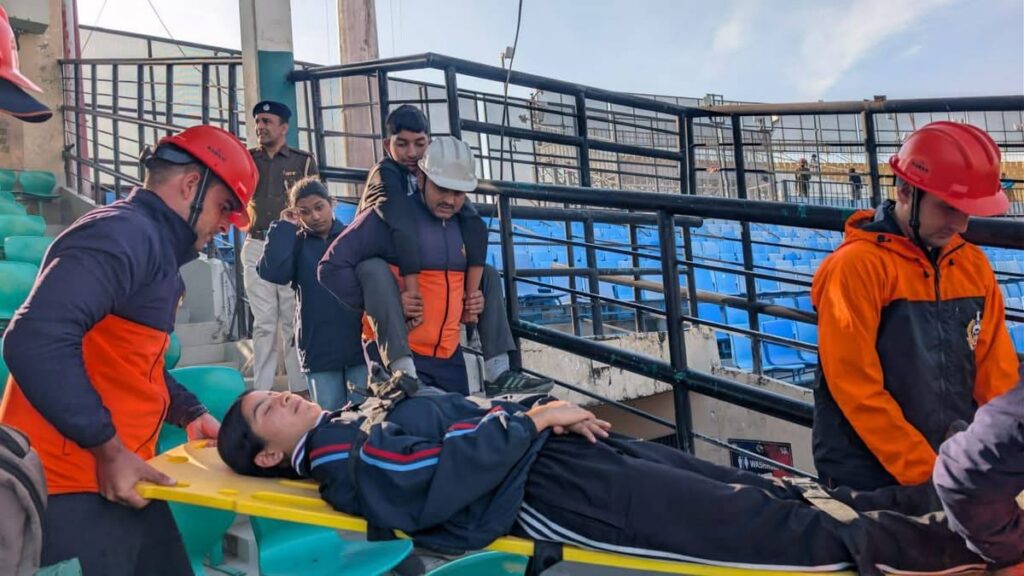 टी-20 मुकाबले के लिए देश के विभिन्न राज्यों से बड़ी संख्या में क्रिकेट प्रेमियों के पहुंचने की उम्मीद है। भीड़ और सुरक्षा की संभावित चुनौतियों को देखते हुए मॉक ड्रिल में स्टेडियम में आग लगने और भगदड़ जैसी स्थिति को आधार बनाया गया। ड्रिल के दौरान आग नियंत्रण, घायलों की निकासी, प्राथमिक उपचार, भीड़ प्रबंधन और विभिन्न गेटों से सुरक्षित निकासी की प्रक्रियाओं का अभ्यास किया गया।