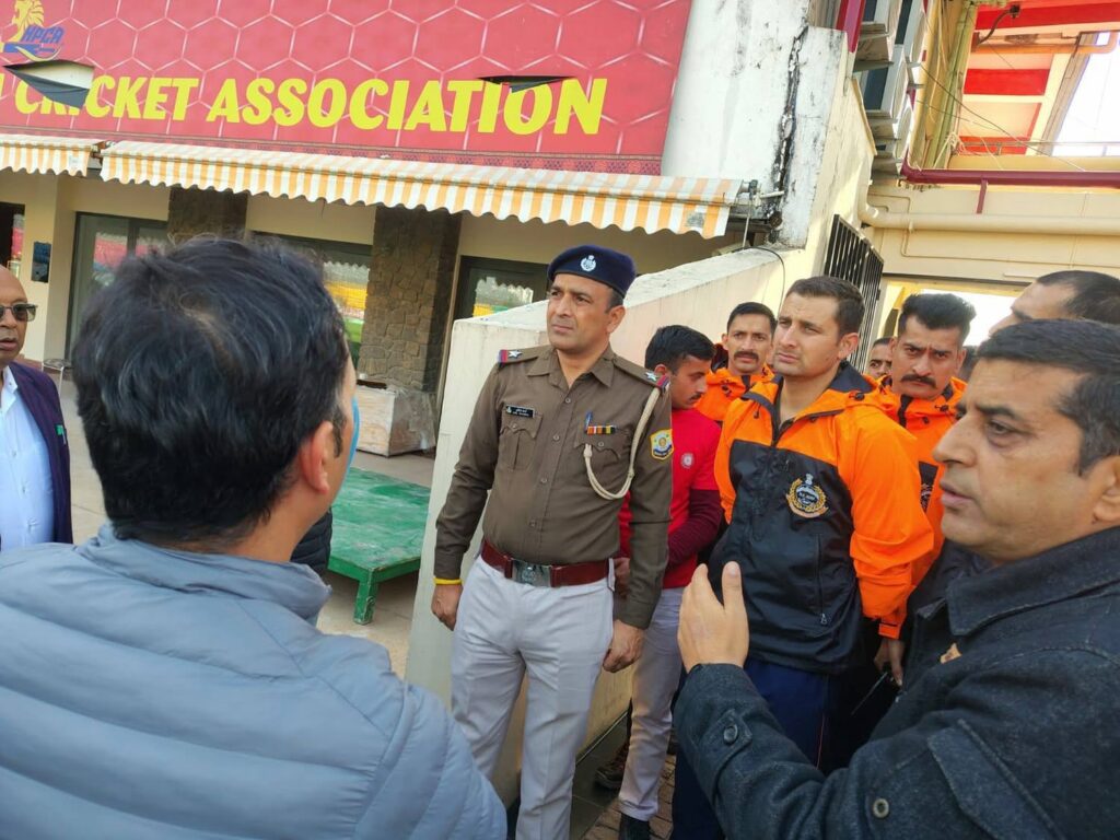 धर्मशाला के एचपीसीए क्रिकेट स्टेडियम में 14 दिसंबर 2025 को होने वाले भारत बनाम दक्षिण अफ्रीका टी-20 मैच से पहले सुरक्षा तैयारियों को परखने के लिए बुधवार को एक व्यापक मॉक ड्रिल आयोजित की गई। जिला प्रशासन कांगड़ा द्वारा आयोजित इस ड्रिल का उद्देश्य यह सुनिश्चित करना था कि मैच के दौरान किसी भी आपात स्थिति में सभी एजेंसियां तेजी, समन्वय और प्रभावी ढंग से प्रतिक्रिया दे सकें।