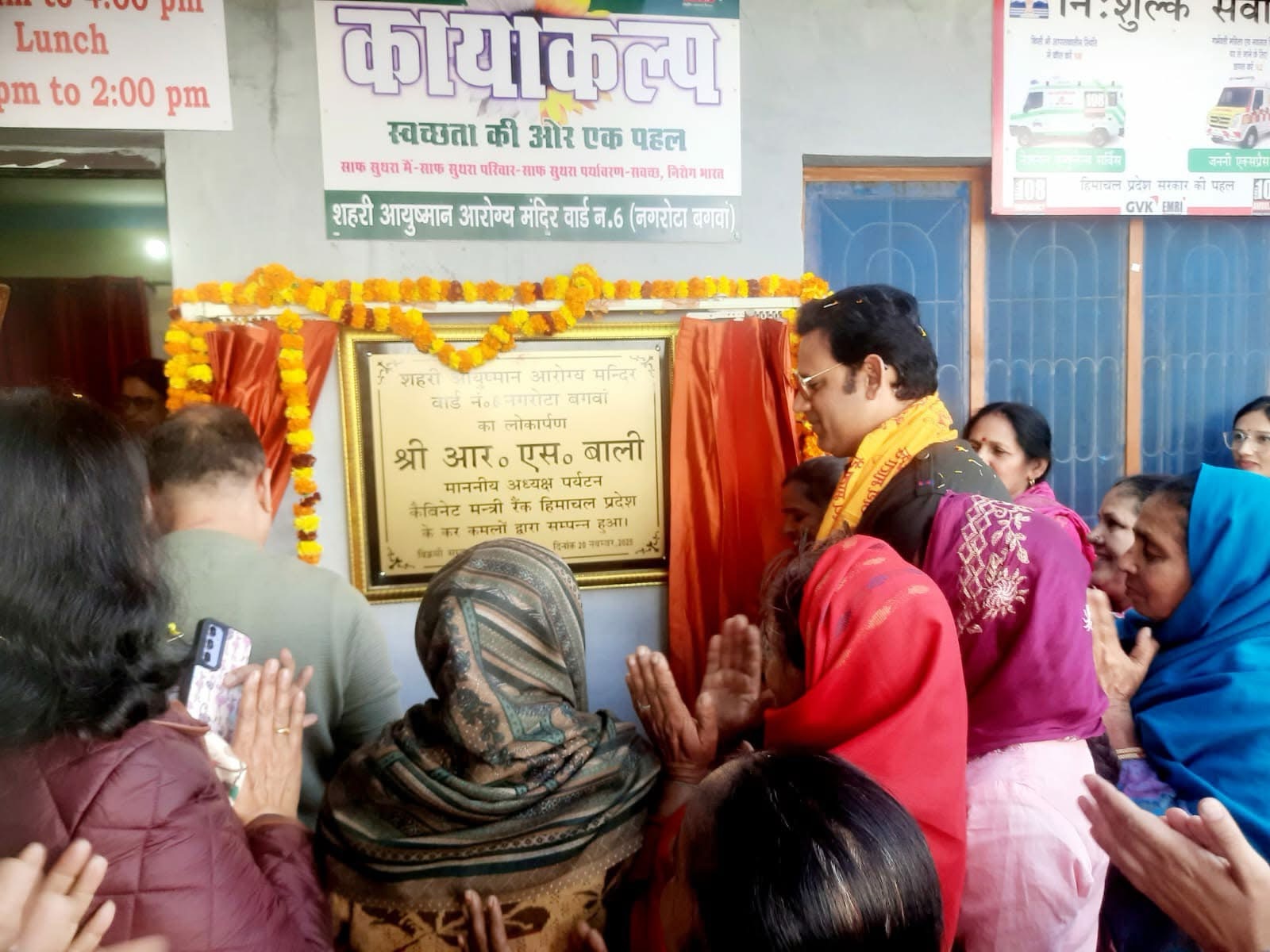 नगरोटा, 20 नवंबर 2025: नगरोटा विधानसभा क्षेत्र के वार्ड नंबर 6 में शहरी आयुष्मान आरोग्य मंदिर का भव्य उद्घाटन किया गया। इस मौके पर हिमाचल प्रदेश पर्यटन विकास निगम के अध्यक्ष एवं पर्यटन विकास बोर्ड के उपाध्यक्ष (कैबिनेट रैंक) आर.एस. बाली मुख्य अतिथि के रूप में मौजूद थे।