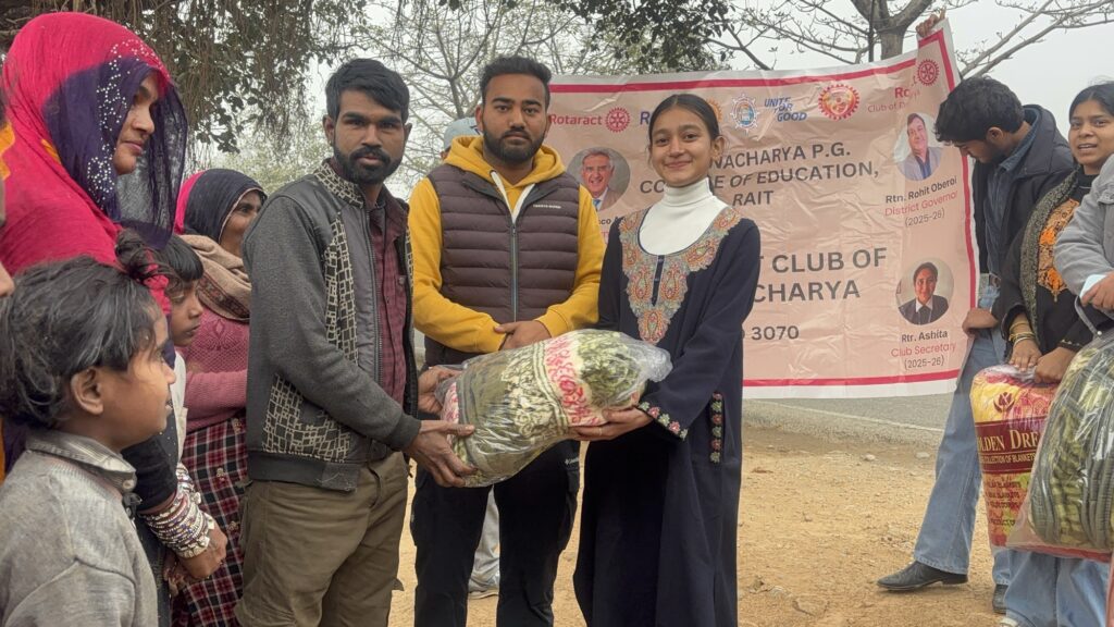 शाहपुर। द्रोणाचार्य पीजी कॉलेज ऑफ एजुकेशन रैत के रोटरैक्ट क्लब द्वारा नव वर्ष के अवसर पर इस सर्द ऋतु में गरीब और असहाय लोगों की सेवा हेतु कंबल दान का सराहनीय कदम उठाया गया इस अभियान का आयोजन नव वर्ष के पहले दिन किया गया इस अभियान में असहाय लोगों को कंबल दान कर नव वर्ष की बधाई दी इस सामाजिक पहल के तहत क्लब के सदस्यों ने बनोई गगल (कुठमन के समीप), जबकि दुर्गेला स्थित राजकीय विद्यालय के पास कंबल दान किया गया। ठंड के मौसम में यह पहल इन असहाय और कुछ प्रवासी लोगों के लिए बड़ी राहत साबित हुई।