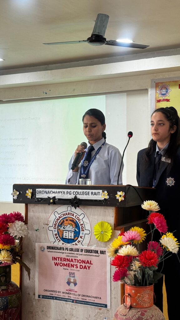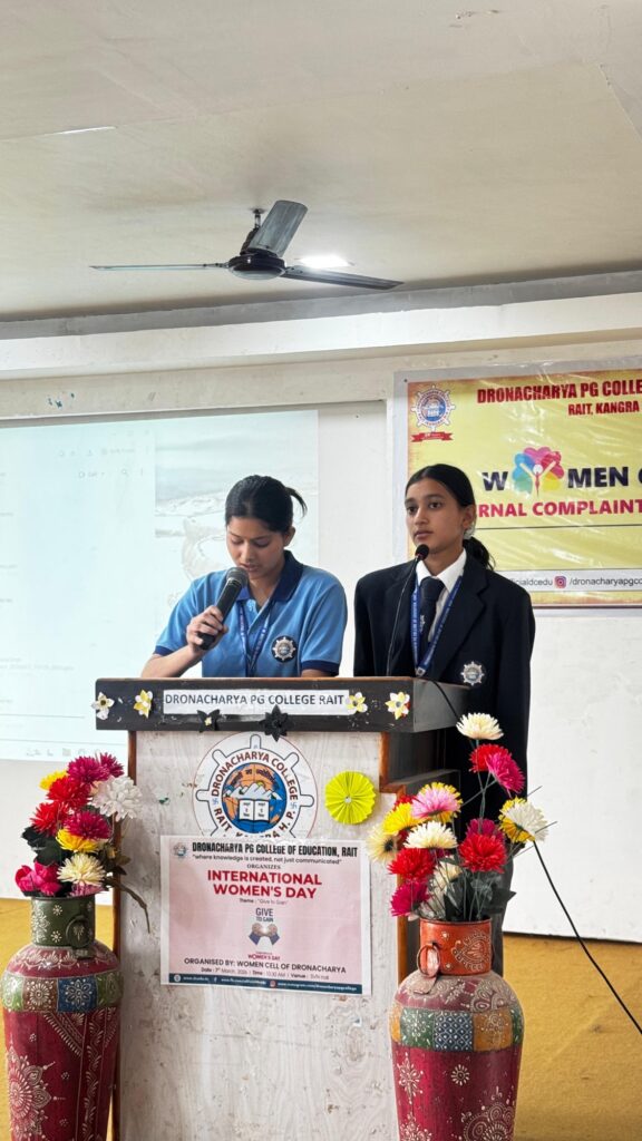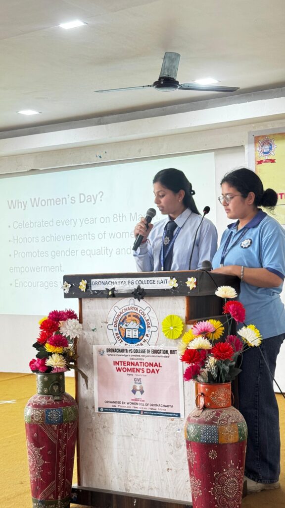 अंतरराष्ट्रीय महिला दिवस के अवसर पर द्रोणाचार्य पी.जी. कॉलेज ऑफ एजुकेशन, रैत के रोटरैक्ट क्लब (RID 3070) द्वारा 7 मार्च 2026 को पोस्टर मेकिंग प्रतियोगिता का आयोजन किया गया। इस प्रतियोगिता का विषय “Empowering Women, Empowering Society” रखा गया था। कार्यक्रम का उद्देश्य छात्रों के बीच महिलाओं के सशक्तिकरण, लैंगिक समानता और समाज में महिलाओं के सम्मान के प्रति जागरूकता बढ़ाना था।