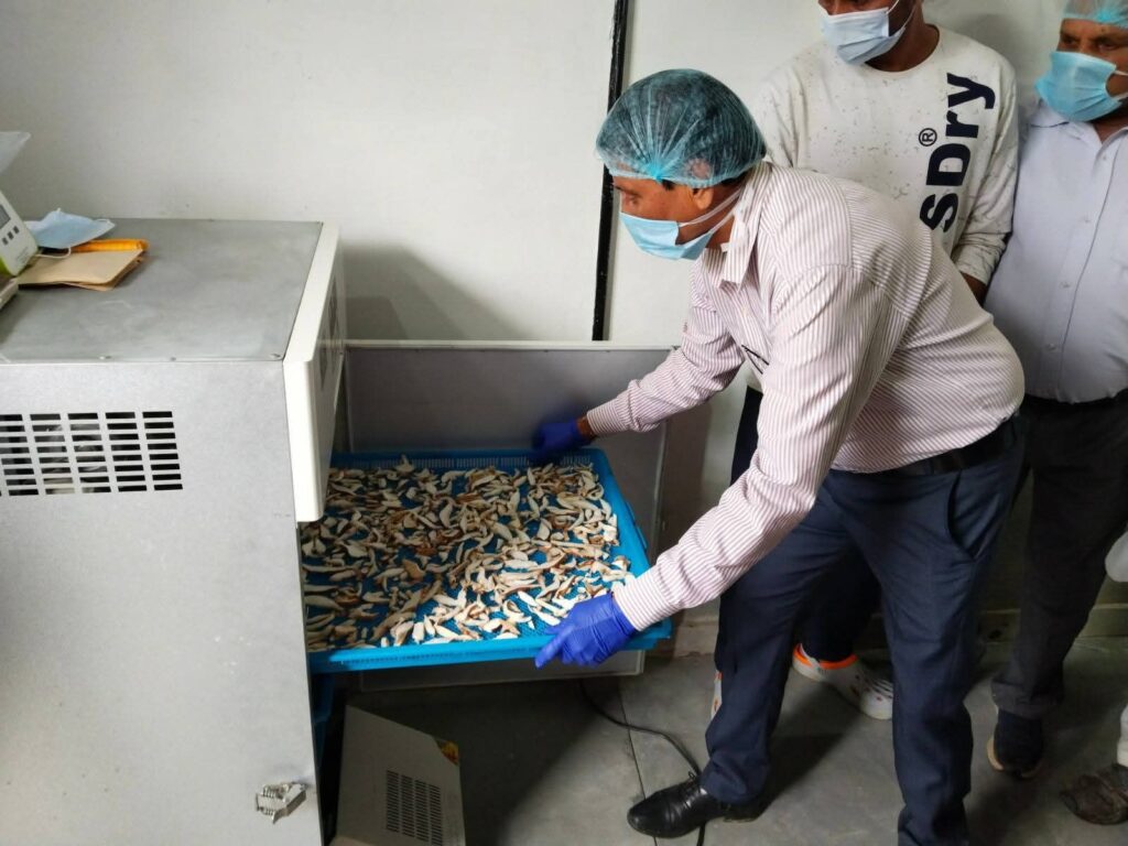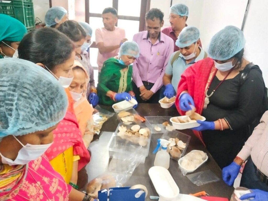 पहले दिन, शिटाके डिसेमिनेटर सपन ठाकुर और प्रशिक्षण संयोजिका अंबिका देवी ने किसानों को मशरूम की कटाई के बाद प्रबंधन, ग्रेडिंग, पोषण व औषधीय गुण, और विभिन्न सुखाने की तकनीक के बारे में जानकारी दी।