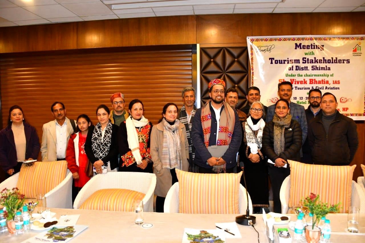 जिला शिमला में पर्यटन से जुड़े सभी हितधारकों की एक महत्वपूर्ण बैठक जिला पर्यटन विकास अधिकारी कार्यालय में आयोजित की गई। इस बैठक की अध्यक्षता पर्यटन विभाग के निदेशक विवेक भाटिया ने की। उन्होंने बताया कि बैठक का मुख्य उद्देश्य पर्यटन क्षेत्र को और बेहतर बनाने के लिए सरकार की योजनाओं पर चर्चा करना और हितधारकों से सुझाव लेना है।