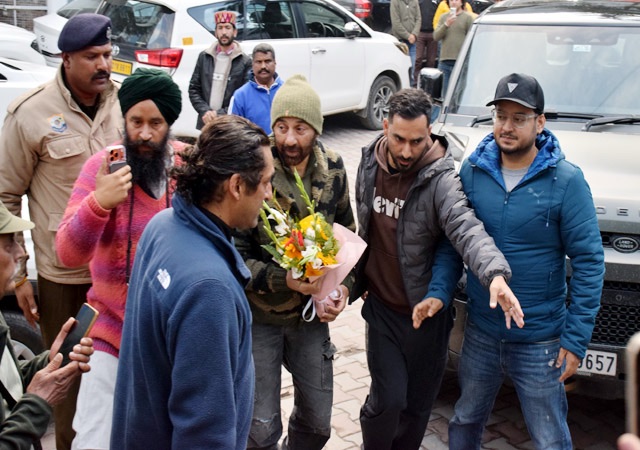 बॉलीवुड के दिग्गज अभिनेता सनी देओल इन दिनों हिमाचल प्रदेश की खूबसूरत वादियों में सुकून के पल बिता रहे हैं। अपनी दमदार फिल्मों से दर्शकों के दिलों पर राज करने वाले सनी देओल शुक्रवार को कुल्लू स्थित शोभला मल्टीप्लेक्स पहुंचे, जहां उन्होंने अपनी फिल्म बॉर्डर-2 की विशेष स्क्रीनिंग में हिस्सा लिया। मल्टीप्लेक्स पहुंचने पर इसके मालिक भाविक ठाकुर ने अभिनेता का गर्मजोशी से स्वागत किया।