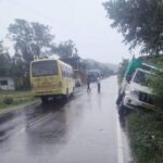 नगरोटा बगवां के रोंखर में बच्चों से भरी स्कूल बस और बोलेरो की टक्कर टली, सभी बच्चे सुरक्षित।