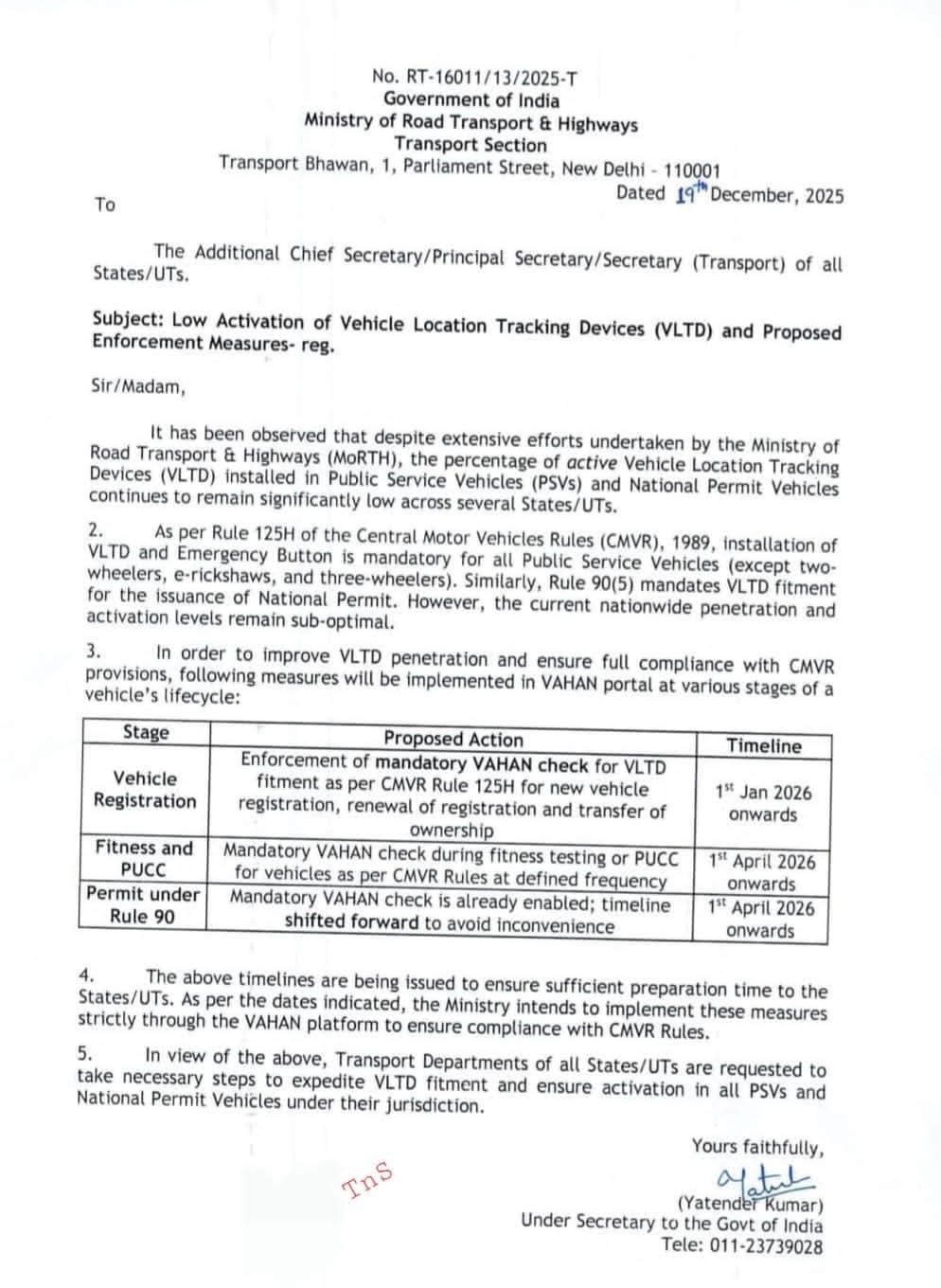 मंत्रालय का कहना है कि तमाम निर्देशों और प्रयासों के बावजूद कई राज्यों और केंद्र शासित प्रदेशों में VLTD सक्रिय नहीं है, जबकि केंद्रीय मोटर वाहन नियम 1989 के तहत यह पहले से अनिवार्य है। सरकार का मानना है कि यात्रियों की सुरक्षा और निगरानी के लिए VLTD का सही तरीके से काम करना बेहद जरूरी है।